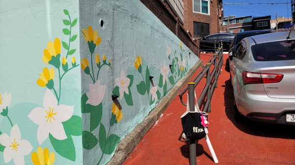 이번 벽화 그리기를 통해 옹벽을 정비하고 밝고 화사한 분위기의 그림을 그려 걷고 싶은 공간으로 탈바꿈하게 됐다.