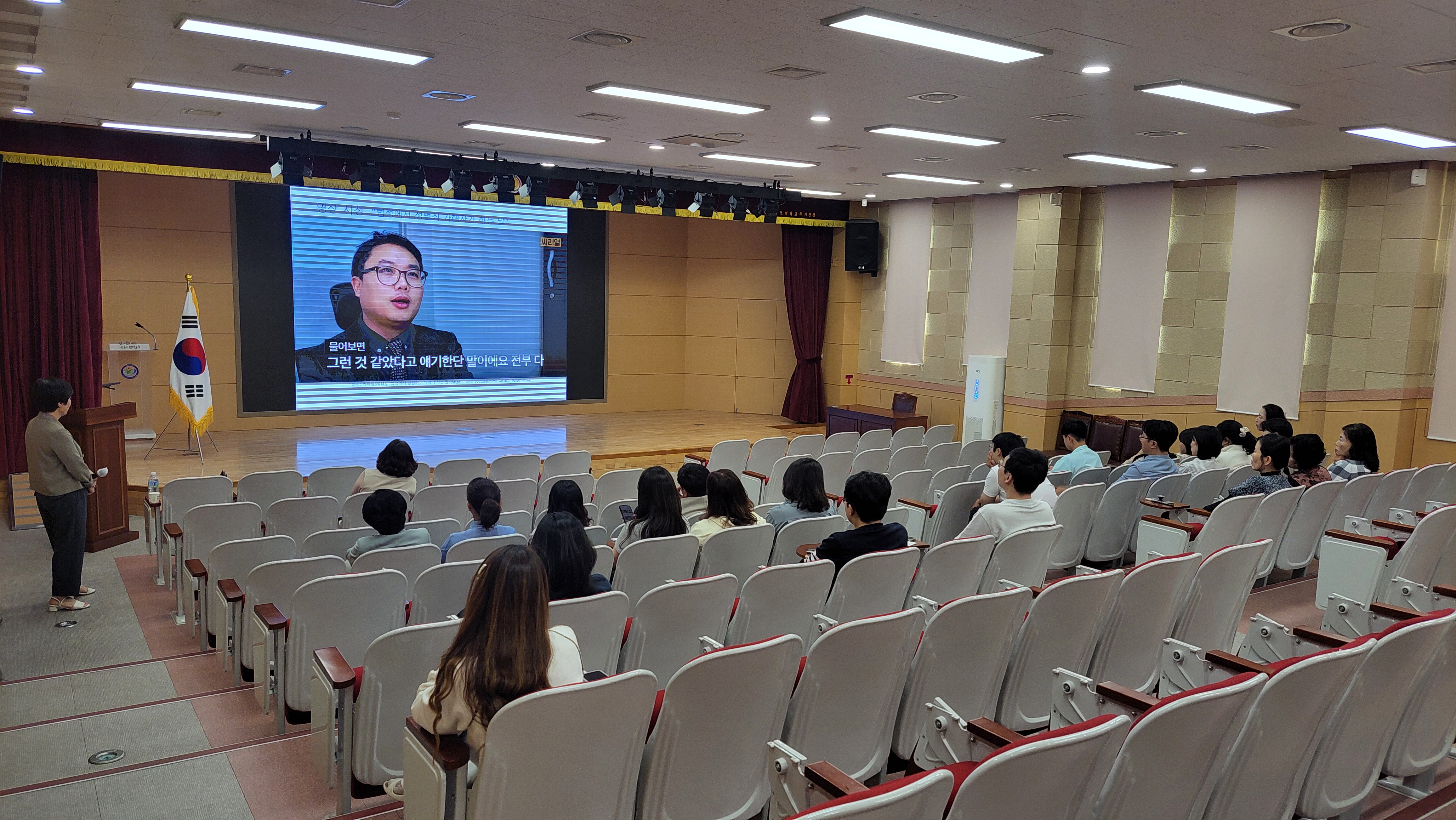 □ 한국양성평등교육진흥원 위촉 전문강사를 초빙하여 성희롱, 성폭력 관련 최근 사례를 살펴보고 그 심각성을 알고 예방을 위한 교육의 중요성을 확인하였고 2차 피해 예방과 피해 시 도움 받을 수 있는 방법을 알아보았다.