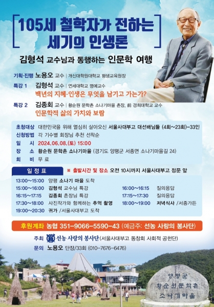 [금요저널] 양평군 황순원문학촌 소나기마을은 8일 오후 3시 ‘김형석 교수님과 동행하는 인문학 여행’ 행사를 개최한다고 밝혔다.