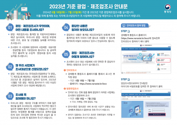 인터넷조사는 2024. 6. 18. ~ 7. 5.까지 www.narastat.kr/ieco에서 참여할 수 있다.