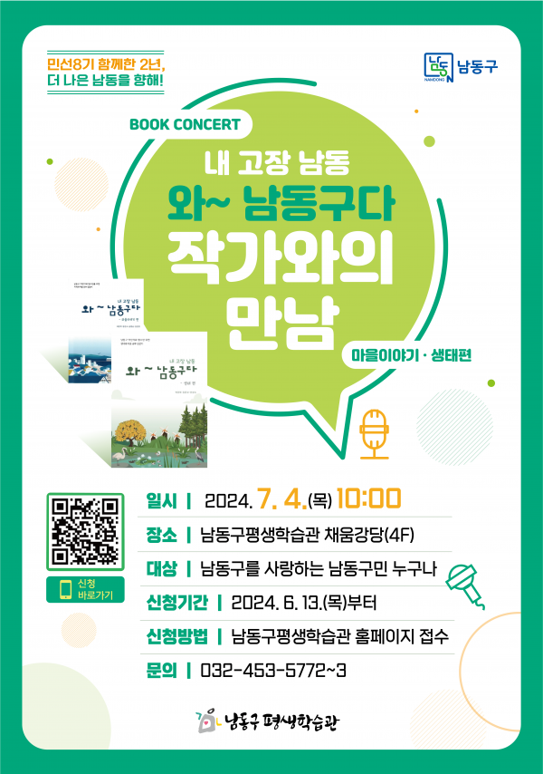[금요저널] 인천시 남동구는 민선 8기 2주년을 기념해 7월 4일 오전 10시 남동구 평생학습관에서 ‘내 고장 남동 와~ 남동구다’ 저자와의 북 콘서트를 진행한다고 18일 밝혔다.