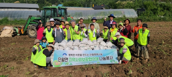 [금요저널] 양평군 단월면 지역사회보장협의체는 지난 21일 단월면 부안리에 있는 힐링하우스 농장에서 감자를 직접 수확하고 이웃들에게 나누는 ‘사랑의 감자 나눔 행사’를 진행했다.