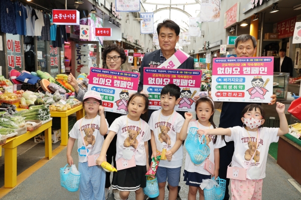 [금요저널] 군포시는 6월 27일 군포역전시장에서 고물가와 경기불황으로 어려움을 겪고 있는 상인들을 격려하고 어린이들과 함께 장보기 체험을 진행하는 ‘어린이 만세마켓’ 행사를 가졌다.