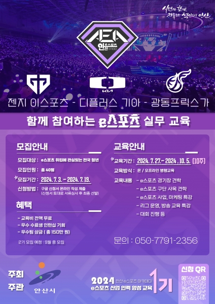 [금요저널] 안산시는 e스포츠 취업에 관심 있는 청년들을 대상으로 2024 안산 e스포츠 아카데미 1기 ‘e스포츠 산업 인력 양성 교육’의 수강생을 모집한다고 2일 밝혔다.