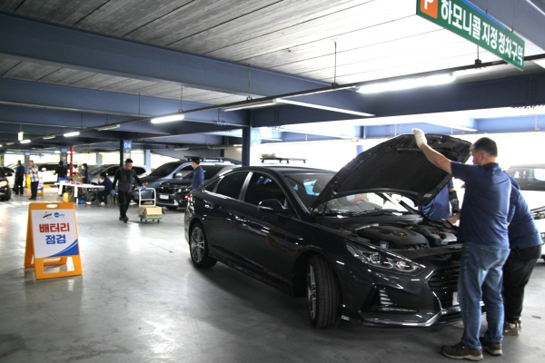 이날 오전부터 자동차 정비 자격을 갖춘 300여명의 정비원들이 자동차 1,100여 대를 대상으로 △엔진오일 등 오일류 점검·보충 △타이어·에어컨·배터리·와이퍼 등 점검, △헤드램프 등 각종 전구와 워셔액 등을 전반적으로 점검했다.