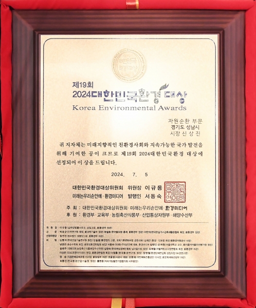 성남시, 대한민국 환경대상 ‘자원순환 부문’ 대상 받아