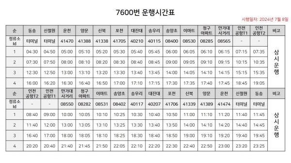 포천시~인천국제공항 잇는 광역버스 7600번 운행