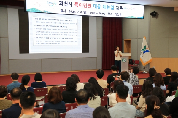 [금요저널] 과천시가 민원 업무 담당 공무원 보호를 위해 이달초 ‘특이민원 대응 매뉴얼’을 제작해 전체 부서에 배포하고 지난 8일 시청 대강당에서 전직원을 대상으로 하는 ‘특이민원 대응 매뉴얼 교육’을 실시했다.