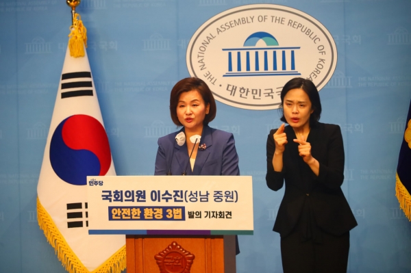 [금요저널] 이수진 의원이 9일 국회 소통관에서 ‘안전한 환경지키기 3법’ 발의 기자회견을 가졌다.