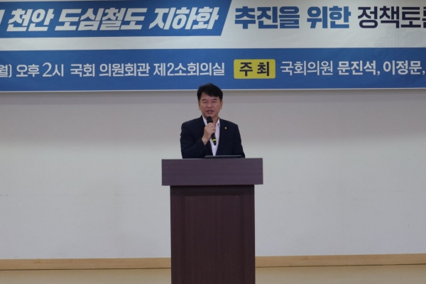 문진석 의원은 개회사를 통해“대한민국 경제 성장을 견인해온 ‘교통 요충지 천안’의 이면엔 도심을 통과하는 철길로 인한 생활권 분리, 지역 불균형, 소음·비산 먼지 등의 각종 환경 문제를 마주하는 천안 시민들의 희생이 있었다”고 지적했다.