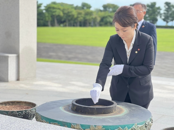 이언주 최고위원 후보는 제주도 첫 공식 일정으로 이른 아침부터 제주4·3평화공원을 참배하고 숭고한 호국정신을 기리고 희생자의 넋을 위로하고 43 유족회 회장 등을 만나 간담회를 가졌다.