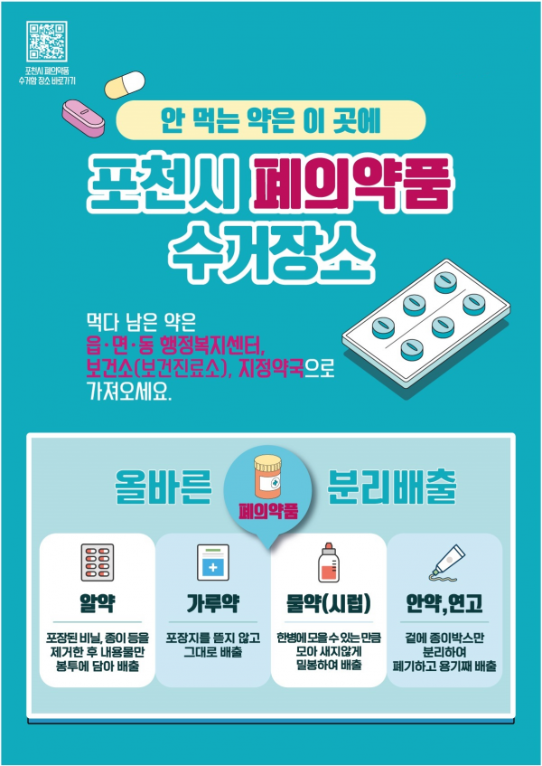 포천시는 “폐의약품을 무분별하게 배출할 경우 토양 및 수질 오염 등 생태계에 심각한 영향을 초래한다”며 “지정된 수거 장소에 올바른 배출 방법을 준수해 폐기하길 당부한다”고 전했다.