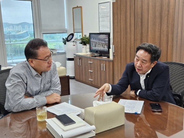 강 의원과 유병서 심의관은 현안사업 이외에도 예산, 홍성 지역의 발전을 위한 효과적인 재정투입 방안에 대해 심도 있는 이야기를 나눴다.