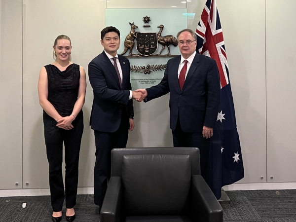 또한 김용태 의원은 제프 로빈슨 호주대사와 양국 간 군사외교, 방위산업, 저탄소 에너지산업에서 협력의 중요성과 호주 이민정책의 성과에 대해 폭넓은 의견을 교환했다.