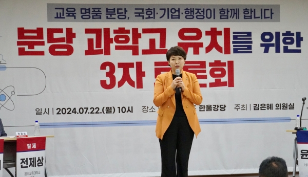 종합토론에 앞서 김은혜 의원은 개회사를 통해 “대한민국 혁신의 심장이자 최고의 교육 도시인 분당에 과학고가 없다는 것은 매우 어색한 현실”이며 “분당의 미래 나아가 대한민국의 미래를 위해 분당 과학고는 선택이 아닌 필수”고 강조했다.