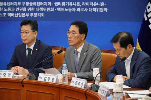 [금요저널] 더불어민주당 환경노동위원회와 노동존중실천 국회의원단이 24일 오전 국회 더불어민주당 당대표 회의실에서 ‘산재 보호 사각지대 처한 쿠팡노동자, 어떻게 지킬 것인가 - 쿠팡노동자의 생명과 안전을 위한 집담회’를 주최했다.