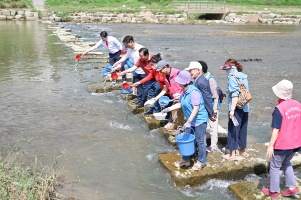 [금요저널] 사단법인 국가유공자환경운동본부 포천시직할회는 지난 7월 31일 포천천에서 모기 유충 박멸을 위한 1차 미꾸라지 방류 행사를 실시했다.