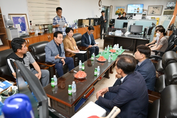 현장에는 백영현 포천시장, 조영제 기업지원과장, 윤정아 가산면장, 이일구 마전2리장 등이 참여했으며 기업소개, 애로사항 청취, 현장 시찰 순으로 진행됐다.