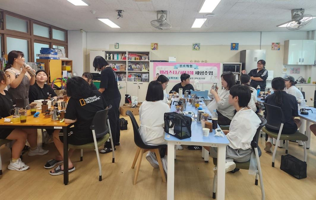 장산중학교는 방학 기간 7월 22일부터 8월 2일까지 매일 2시간씩 홈바리스타 자격증 과정을 운영했다.