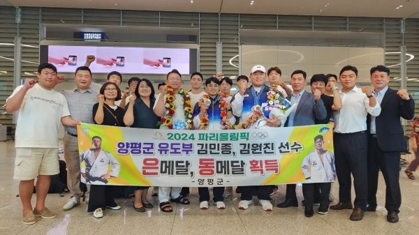 [금요저널] 양평군이 파리올림픽에 출전한 양평군청 직장운동경기부 유도선수 김민종, 김원진 선수의 귀국을 열렬히 환영했다.