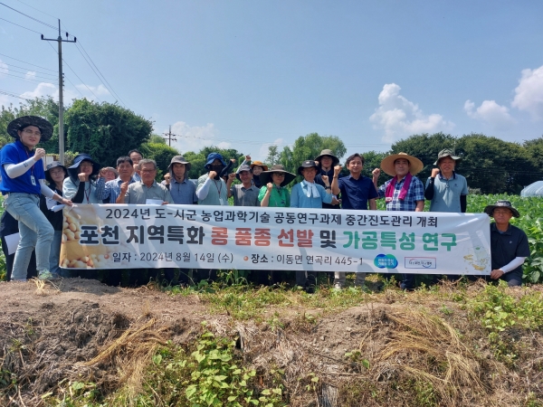 [금요저널] 포천시 농업기술센터는 지난 14일 이동면 연곡리 소재 논콩 시험포장 시설에서 ‘포천 지역특화 콩 품종 선발 및 가공 특성 연구’ 중간 평가회를 개최했다.