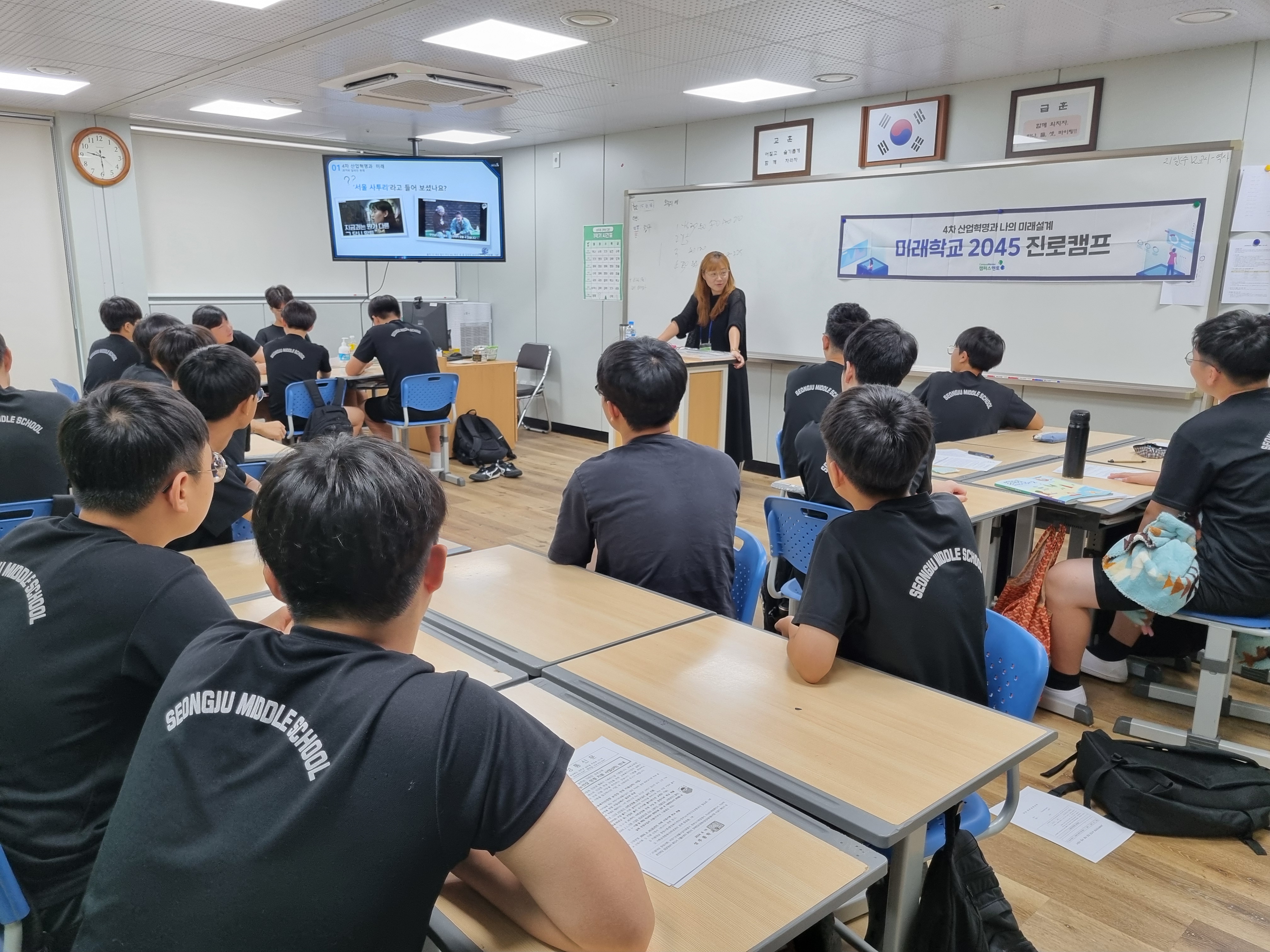 □ 성주중학교(교장 권오웅)는 4차 산업혁명 시대 학생들이 미래 사회에 대한 통찰력을 기르고 직업이 변화하는 트랜드를 인식하여 자신의 흥미와 적성에 맞는 미래 직업에 대한 관심을 높이기 위해 ‘미래학교 2045’ 진로캠프를 실시하였다.