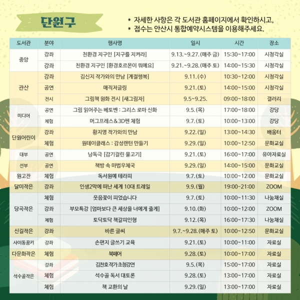 안산시, 9월 독서의 달 맞아 도서관에 다양한 문화행사 마련