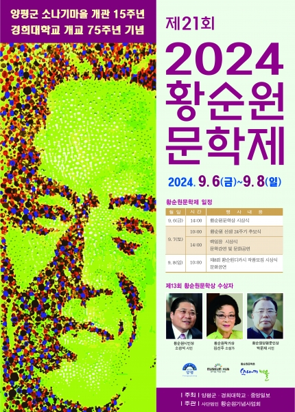 [금요저널] 양평군, 경희대, 중앙일보가 주최하고 황순원기념사업회가 주관하는 ‘제21회 황순원문학제’ 가 2024년 9월 6일부터 9월 8일까지 3일간 개최된다.
