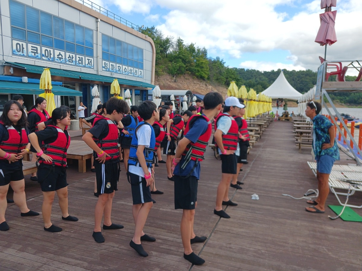 □체험학습은 오전 8시 30분에 학교에서 출발하여, 10시에 임하호 수상레저타운에 도착하면서 시작되었다. 현장에서는 안전 교육이 시행되었고, 학생들은 수상 레포츠에 필요한 장비를 착용한 후 다양한 활동을 체험했다. 활동 중에는 수상 스키, 바나나보트, U- 슬라룸, 플라이피쉬 등을 시도하며 신체적 도전과 협동의 중요성을 몸소 느꼈다.