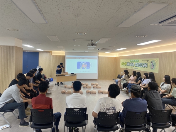 전문강사를 초빙한 이번 교육에는 자동심장충격기 관리책임자 교육, 심정지 환자의 심폐소생술 요령, 자동심장충격기 사용법 및 관리, 생활 속 각종 사고 시 응급처치 등 이론과 실습이 병행됐다.