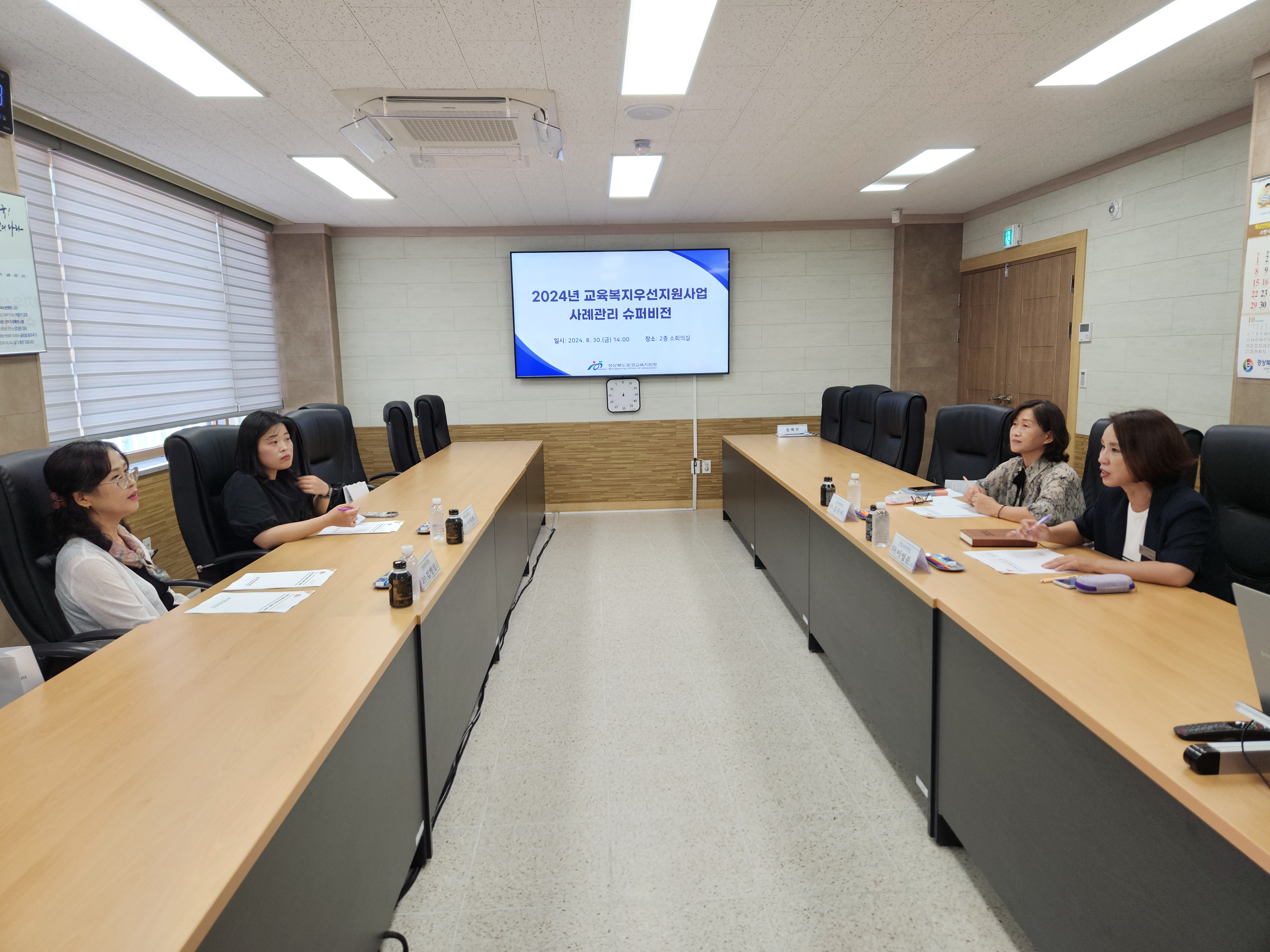 □ 경상북도문경교육지원청(교육장 이경옥)은 8. 30.(금) 2시, 소회의실에서『교육복지우선지원사업 사례관리 슈퍼비전』을 실시했다.