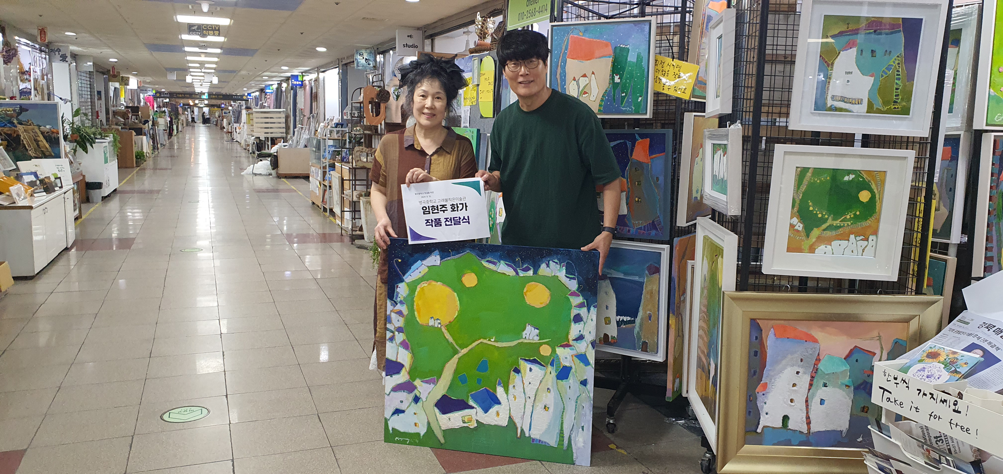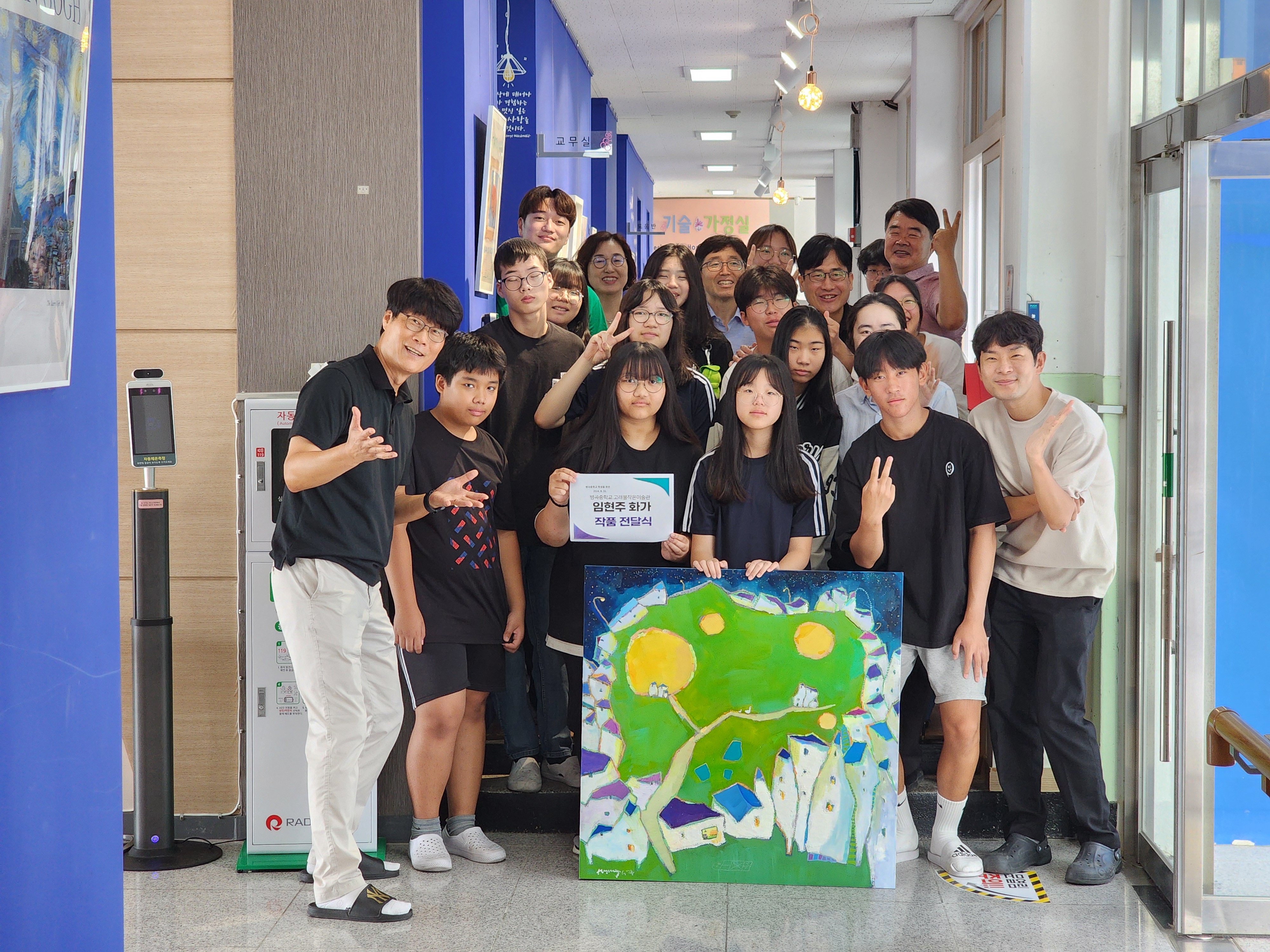 □ 2024년 8월 31일, 부산에서 활동하는 중견 화가 임현주가 병곡중학교(교장 김상기)의 <고래불 작은 미술관>에 귀한 작품을 기증했다. 임현주 화가의 따뜻한 색감과 독창적인 시각의 작품을 통해 학생들과 교직원들 및 지역 사회에 긍정적인 영향을 미치게 될 것이다.