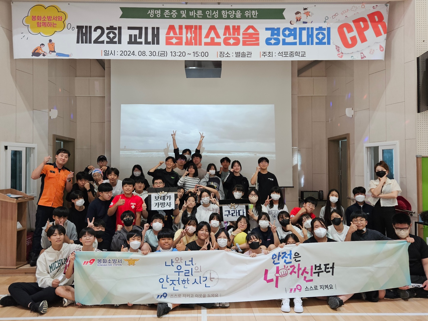 석포중학교(교장 강천석)는 2024년 8월 30일(금) 별솔관 강당에서 전교생을 대상으로 제2회 교내 심폐소생술 경연대회를 개최하였다.
