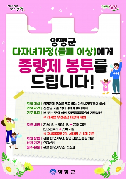 양평군, 다자녀가정 종량제봉투 무료지급 절차 간소화