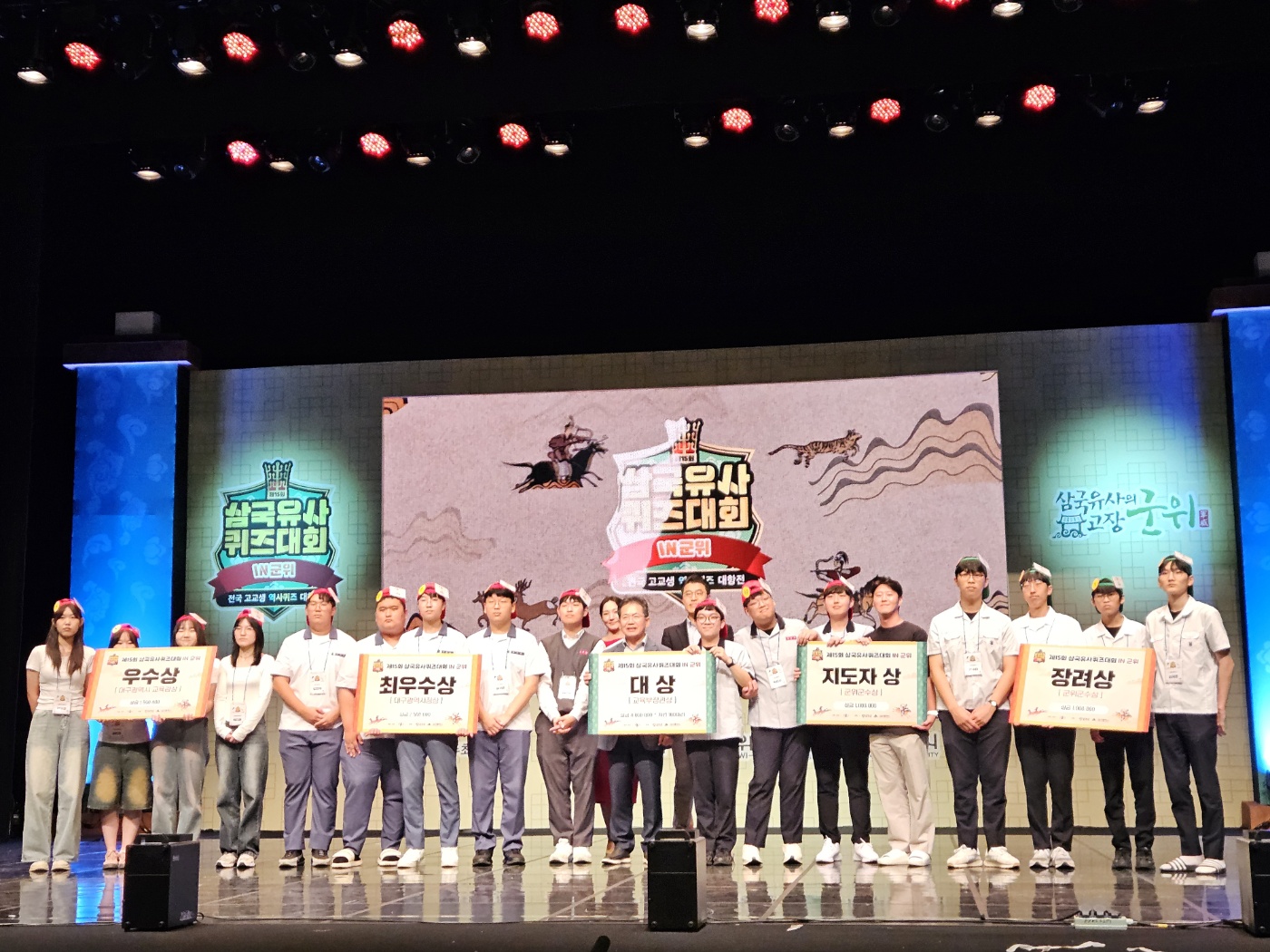 영양고등학교(교장 신현준)는 7일부터 8일까지 군위군에서 개최된 제15회 삼국유사 퀴즈대회에 1학년 권언수, 박성민, 2학년 김지훈, 정세환 학생이 참가하여 최종 4위로 장려상(군위군수상, 상금 1,000,000원)을 수상하는 쾌거를 이루어내었다.