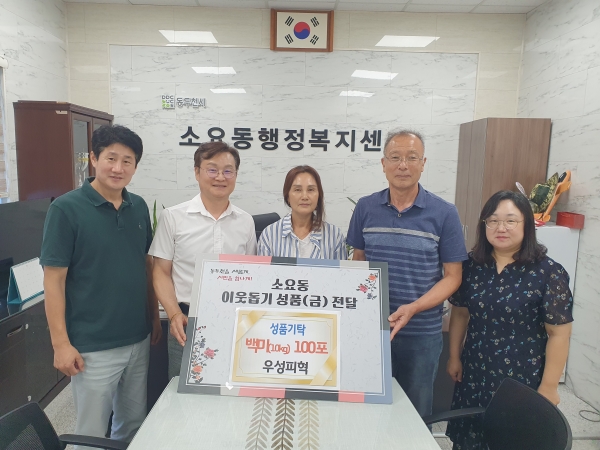 [금요저널] 소요동 행정복지센터는 11일 관내 업체인 우성피혁에서 추석맞이 소외계층 가구에게 전달할 백미 10kg 100포를 기탁했다고 밝혔다.