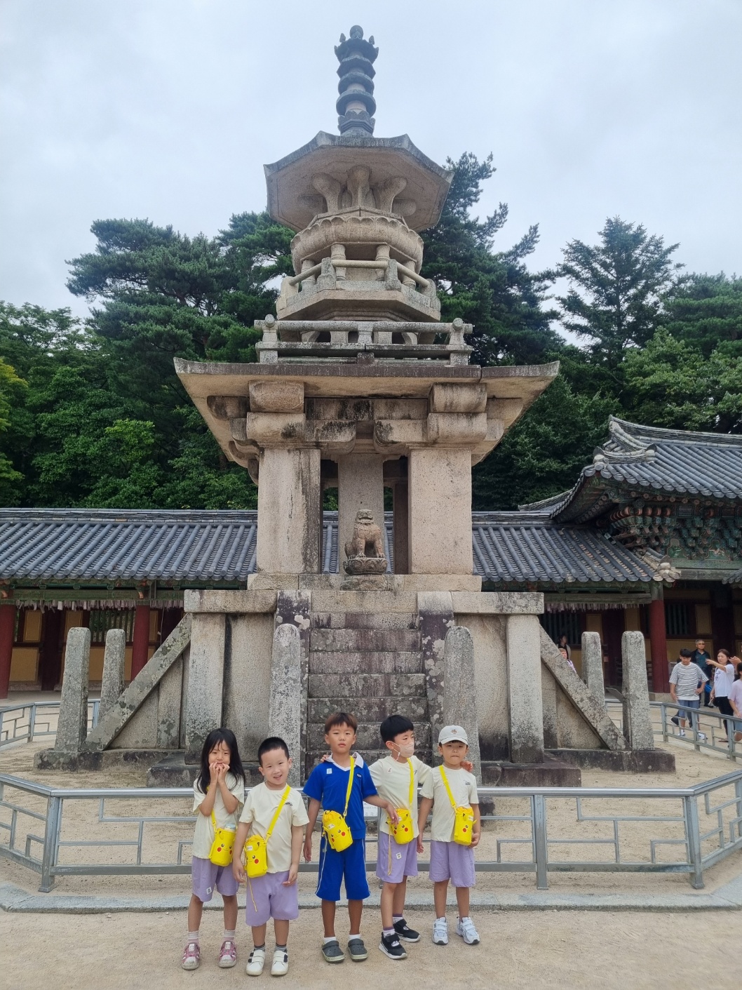 □ 통일신라 시대의 사람이 되어 보는 상상을 해 보며, 청운교와 백운교를 지나 대웅전과 다보탑, 석가탑 등 아름다운 건축물을 감상하였다. 또한 건축물에 숨겨진 옛이야기를 들으며 선조들의 지혜에 박수를 보내기도 하였다.
