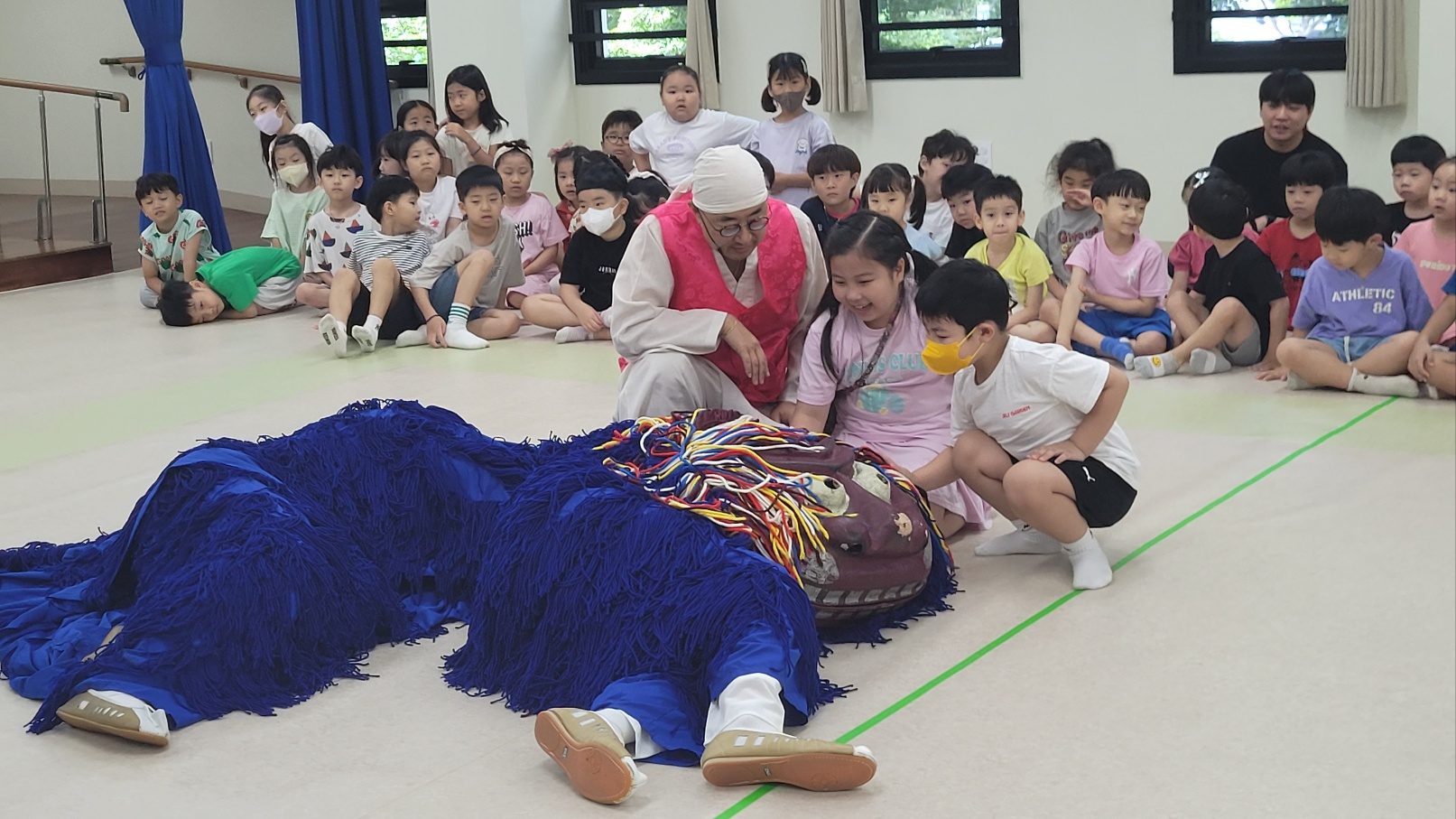 □ 풀잎반 유아 OOO은 “말뚝이 탈이 재밌게 생겨서 탈을 쓰고 춤을 추면 엄청 신이 나요!” 라고 말했으며 1학년 유아 OOO은 “북청사자가 무서워 보였는데 함께 장난도 치고 사자 털옷도 만져보면서 친해졌어요.” 라고 소감을 말했다.