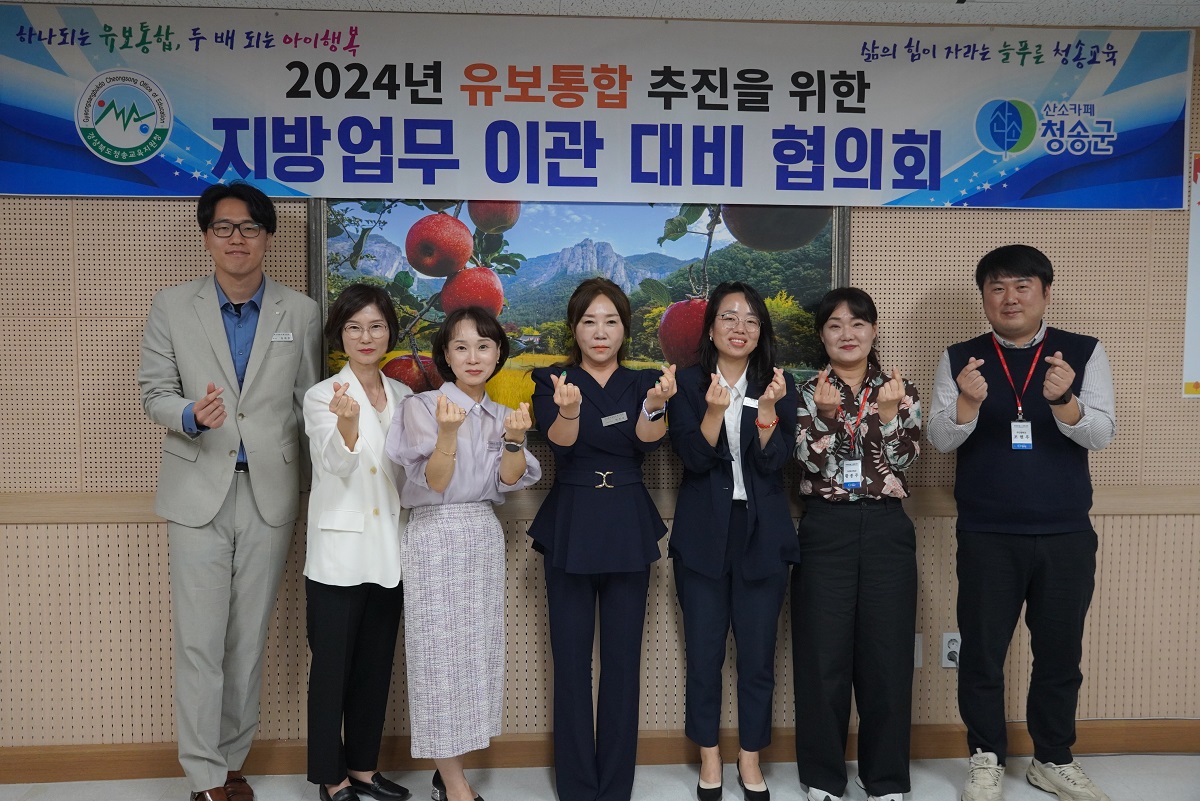 □ 경상북도청송교육지원청(교육장 신덕섭)은 9월 24일(화) 14시 청송교육지원청 소회의실에서 「청송 유보통합 추진 실무 협의체」위원 7명이 참석한 가운데 유보통합 업무의 원활한 이관 추진을 위한 실무협의체 6차 협의회를 개최하였다.