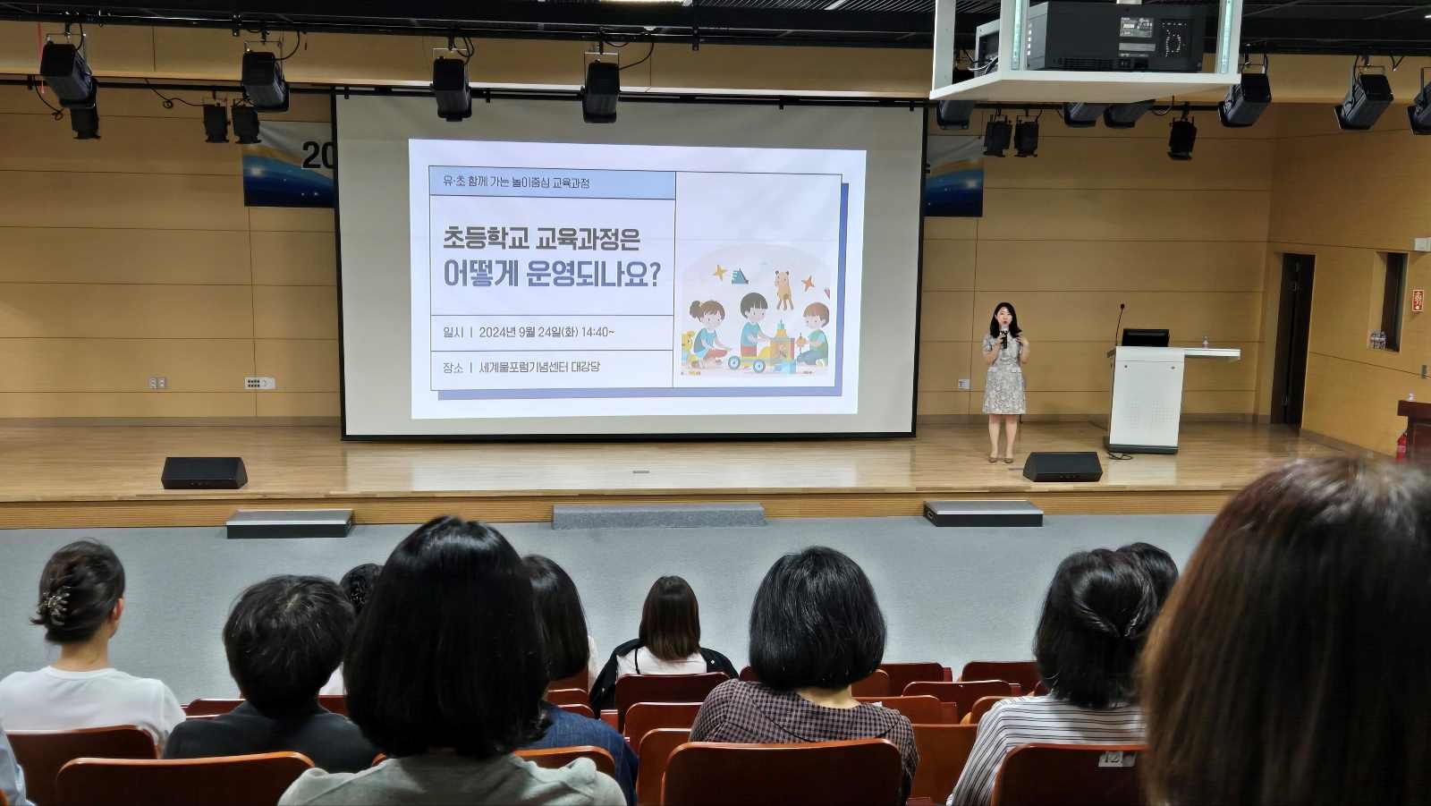 □ 경상북도안동교육지원청(교육장 안중환)은 9월 24일(화) 안동세계물포럼기념센터 대강당에서‘유·초 이음교육 운영을 위한교원 역량강화’라는 주제로 안동권역(안동, 의성, 영양) 유치원교사들을 대상으로 오전에는 방과후과정, 오후에는 교육과정 교사 연수를 하였다.