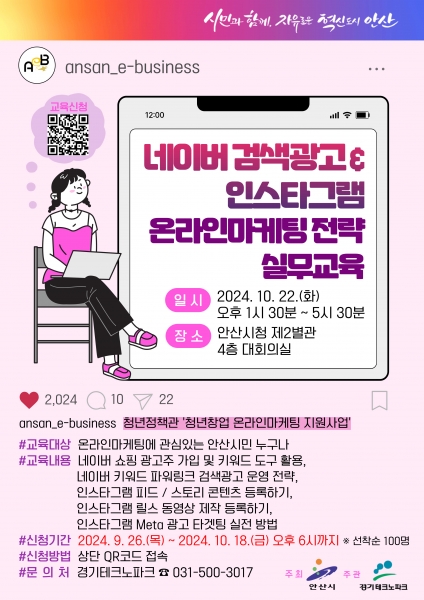 이민근 안산시장은 “이번 온라인 홍보 마케팅 실무교육에 참여하는 예비·초기 청년 창업자들이 다양한 마케팅 전략을 습득할 수 있는 계기가 되길 바란다”고 말했다.