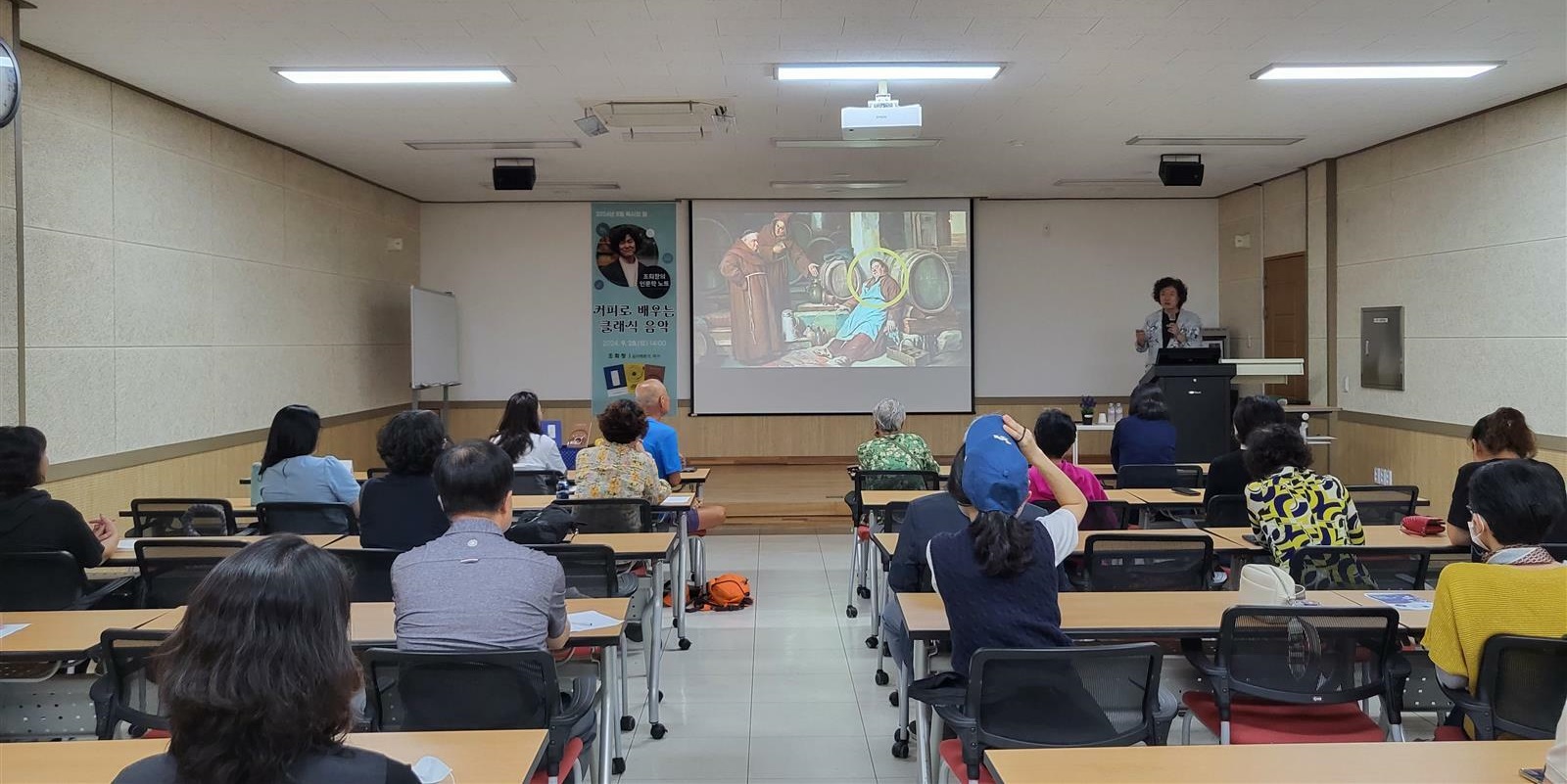 □ 이번 특강은 ‘커피로 배우는 클래식 음악’이라는 주제로 진행되었으며, 조희창 작가는 커피의 역사와 함께 클래식의 흐름을 통해 지역주민들이 깊이 있는 이해를 할 수 있도록 돕는 강연을 진행했다.