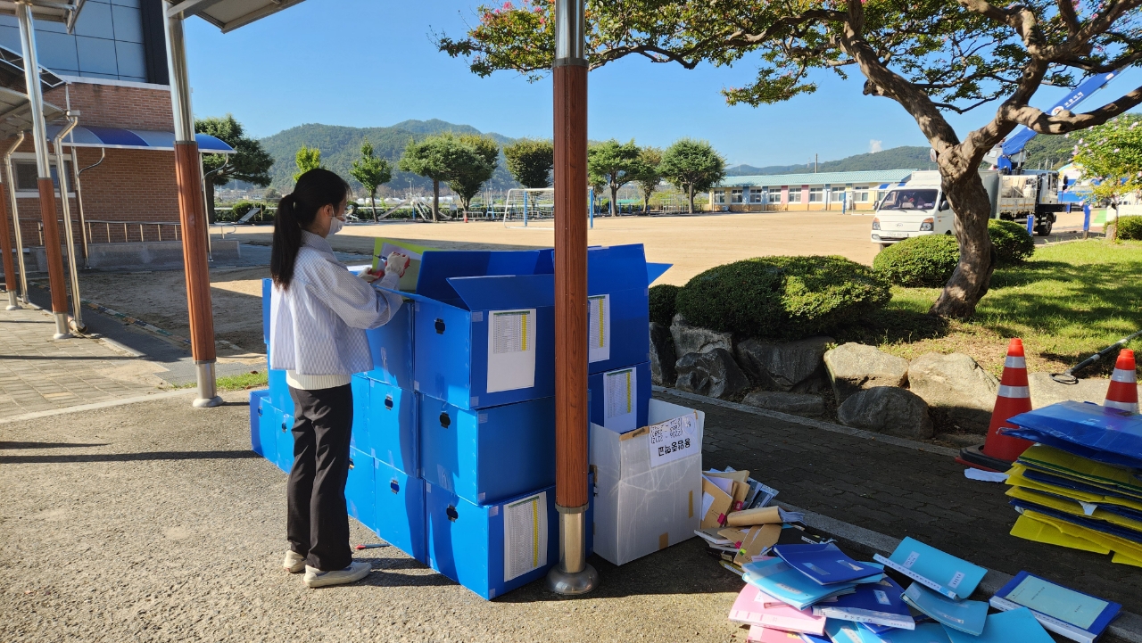 □ 경상북도성주교육지원청(교육장 정수권)은 지난 9월 30일, 10월 2일 이틀간 성주교육지원청과 거점 학교 운동장에서 보존기간이 만료된 학교 비전자기록물 4만 4천여권을 현장 파쇄하였다.