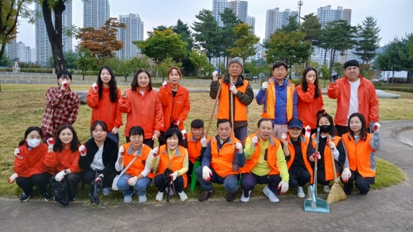 참여자들은 푸른마당 근린공원 산책로 터널 및 하천변 울타리 거미줄 제거, 낙엽 및 잡초 정리, 쓰레기 수거 등을 진행했다.