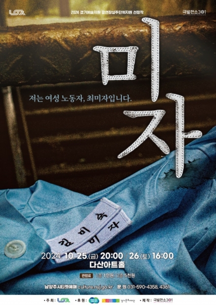 [금요저널] 남양주시는 문화의 달 10월을 맞이해 오는 25일과 26일 다산아트홀에서 상주단체인 ‘극발전소301’의 신작 공연 ‘미자’를 선보인다고 10일 밝혔다.