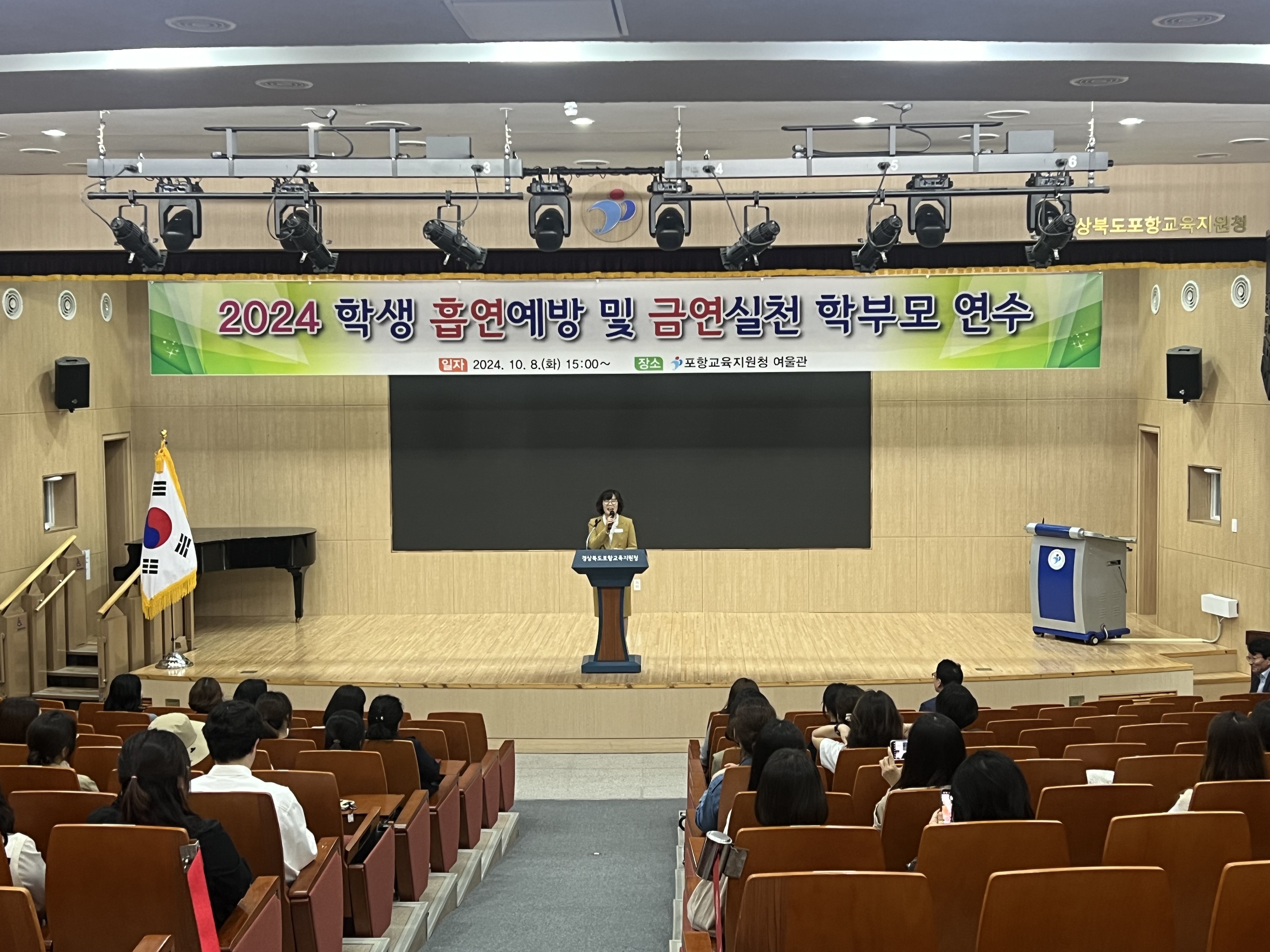포항교육지원청(교육장 최한용)은 2024. 10. 8.(화)에 포항교육지원청 여울관에서 관내 초‧중‧고등학교 학부모 대상으로‘흡연예방 및 금연실천 연수’를 실시했다.