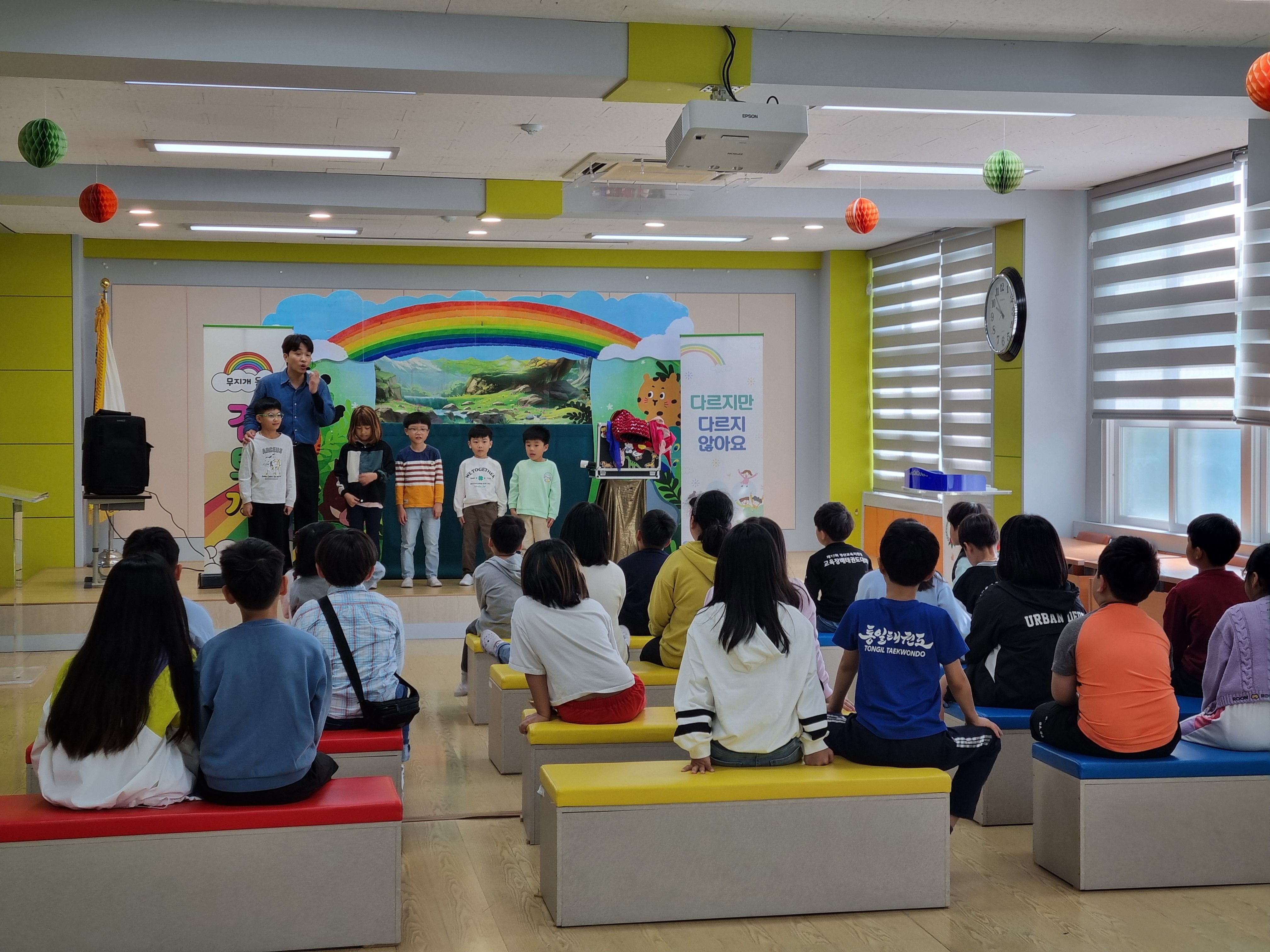 □ 배재만 원장은 “병설유치원과 초등학교 저학년 아이들이 함께 모여 학교폭력예방 인형극 및 마술쇼를 관람하며 학생들이 친구의