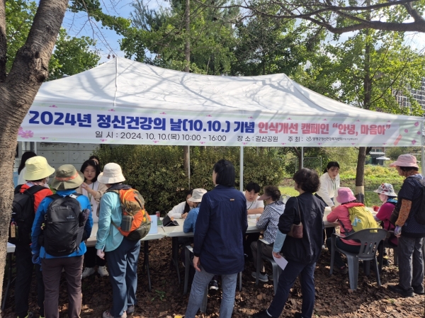 이번 캠페인은 정신건강에 대한 부정적 인식 변화를 위해 갈산공원을 방문한 지역주민을 대상으로 ‘정신건강 오해와 진실’, ‘부정적인 감정을 해소하는 감정 쓰레기통’, ‘스트레스 검사’, ‘센터 인식도 조사’ 등 다양한 체험형 부스 운영이 이뤄졌다.