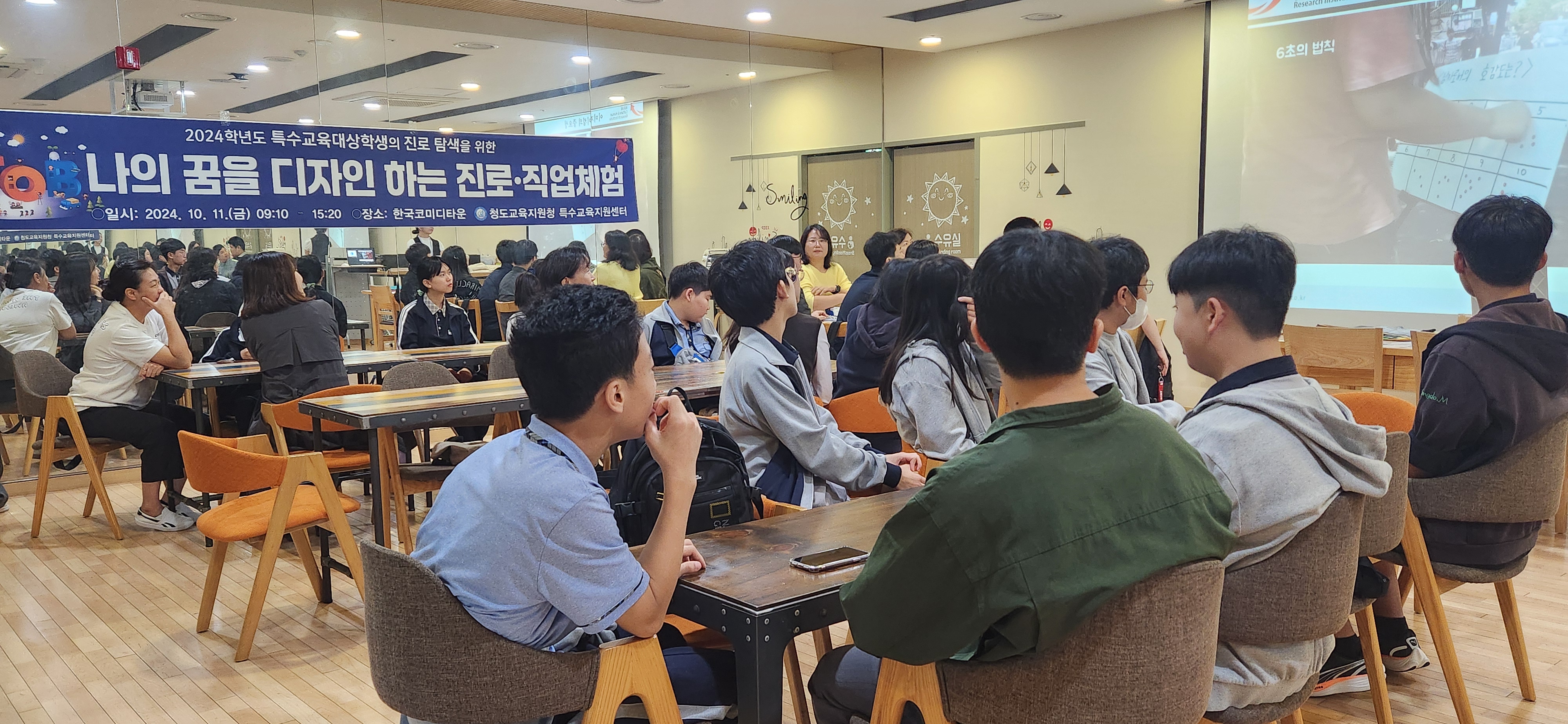 경상북도청도교육지원청(교육장 이시균) 특수교육지원센터는 10월 11일(금) 한국코미디타운에서 관내 중·고등 특수교육대상학생 20명을 대상으로 진로·직업 프로그램 체험을 실시하였다.