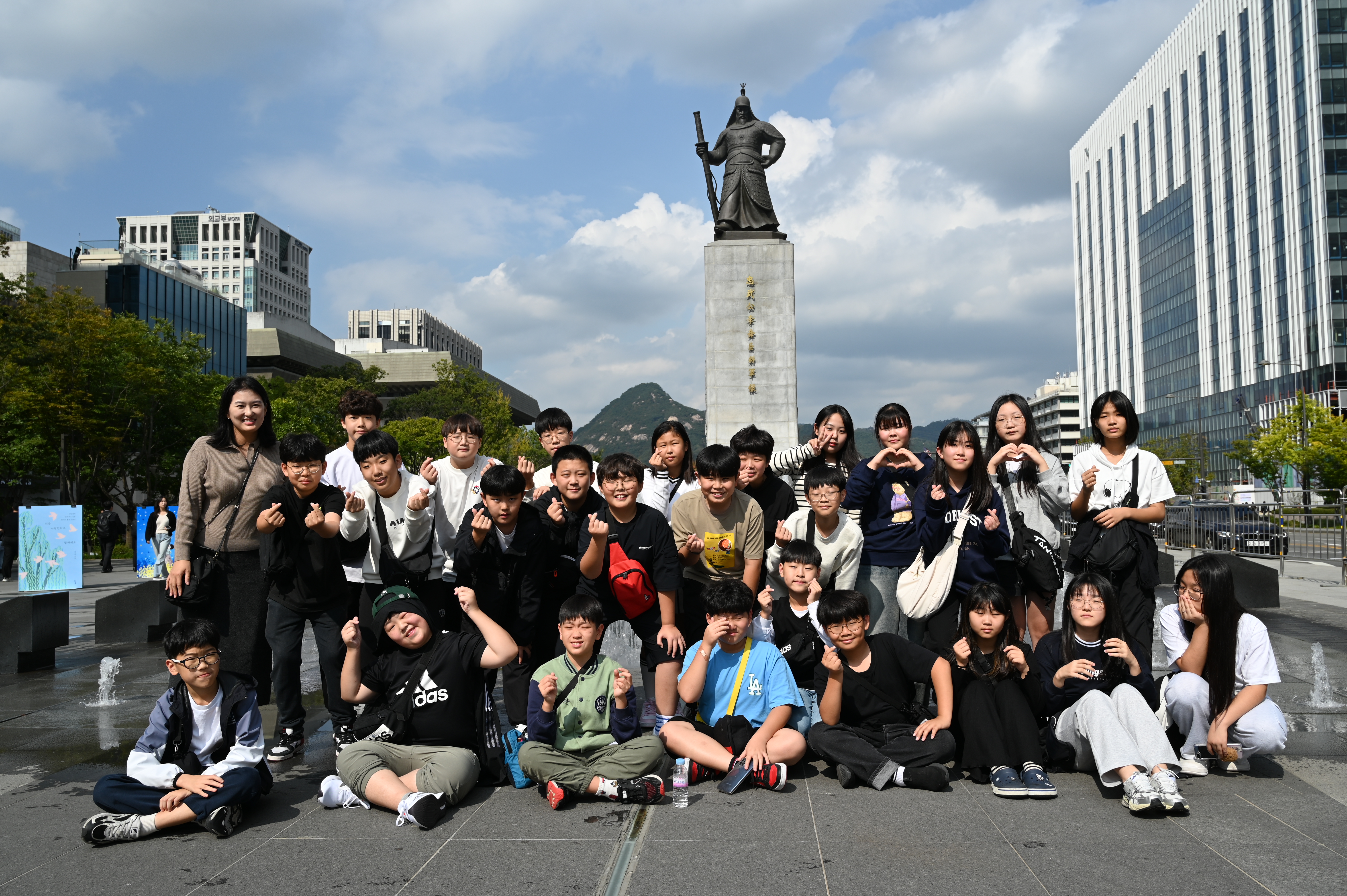 여정의 첫날, 학생들은 세종대로를 따라 걸으며 이순신 장군과 세종대왕 동상 앞에서 한국을 빛낸 위인들의 기운을 느꼈다. 이어, 조선 시대의 정궁이자 한국 전통문화의 상징인 경복궁을 방문하여 근정전과 경회루 등을 둘러보며 조선 왕실의 역사와 문화를 직접 체험했다. 수문장 교대식과 ‘왕가의 산책’ 퍼레이드를 관람한 후, 과제 해결 미션 모둠 활동을 통해 선조들의 삶을 생생하게 느끼며 우리 역사를 깊이 이해할 수 있었다.